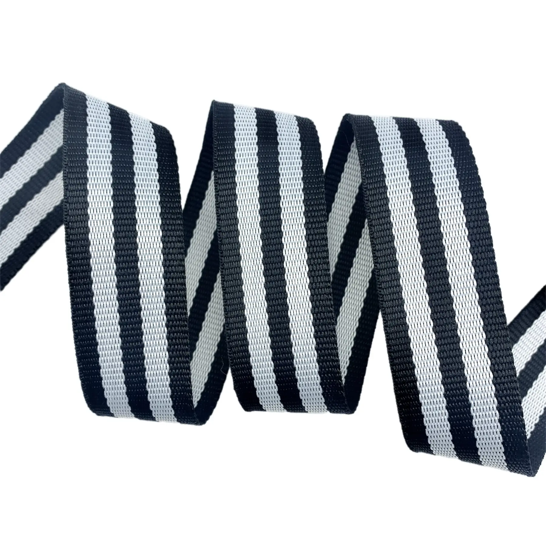 A alça chic modelo AGBIA é nosso cadarço chato e 100% poliéster listrado. Normalmente utillizado como fita para alça de sacolas e bolsas, malas e mochilas.
